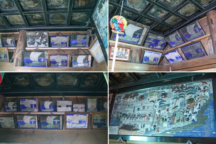 後日、中を見せてもらえる機会がありました!沢山の船絵馬が飾ってあり、海上安全を祈願した絵の奉納もありました。