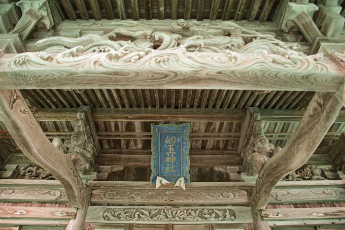 彫刻も立派です、上には龍がありますね。中は閉まっていているので、企画展での船絵馬をご覧ください。